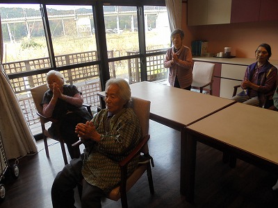 今日は冷たい雨。お散歩はまたにして体操しました。