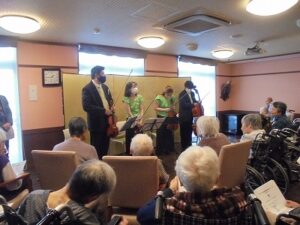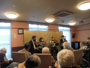 特養の地域交流スペースに『しょうなん弦楽四重奏』の演奏を聞きに行きました。
