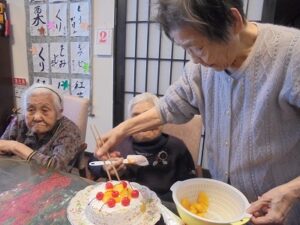 昨日誕生日を迎えられたご利用者様を、(昨日はお正月のご馳走だったため)
