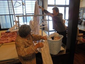 皆さんで協力して洗濯物を干したり、