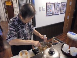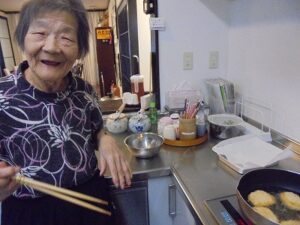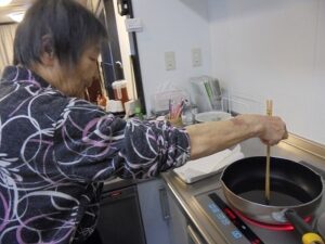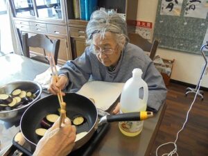 油でコロッケを焼いて、夕ご飯のおかずも上手に出来ました。