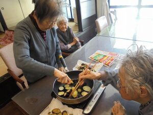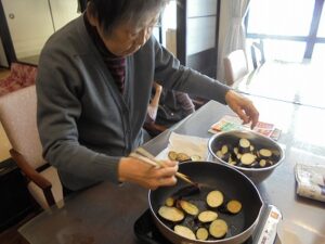 油でコロッケを焼いて、夕ご飯のおかずも上手に出来ました。