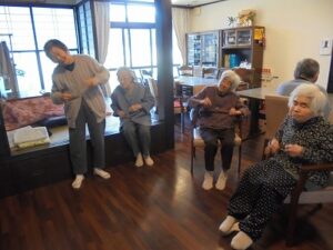 ご飯のこしらえや、体操をしたりと