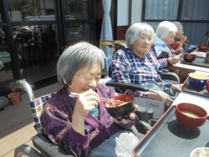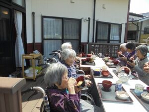 本日は、暖かい日差しの下で昼食を頂きました♪