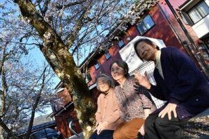 花びらは雪のように落ちて来ました。風に舞ったり、道にもさくら絨毯になりました。