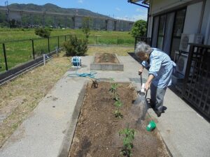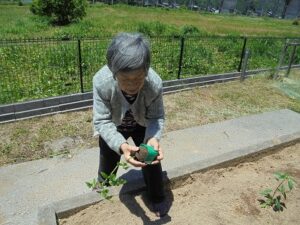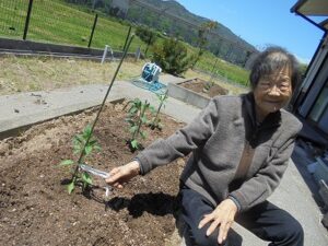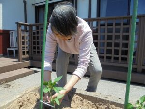 暖かな日差しの中、キュウリの苗を植えました♪