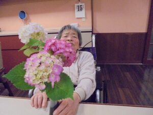 美しい色合いの「紫陽花」が届き、利用者さまの目がなごみました。