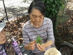 大きな桜の木の枝の葉に何かを見つけられたようです。
