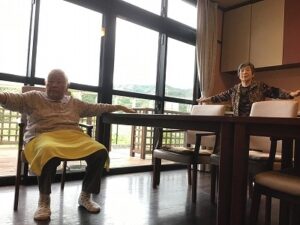 皆さんで体操を行い・・・