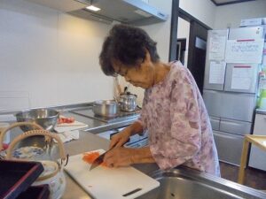 皆さんで昼食作りです!!手慣れておられます。