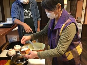 食事はバイキング形式で自分のお好みでご飯を取って頂きます。