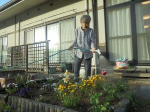 食事を作ったり散歩に行ったり、花壇のお手入れをしたりなど