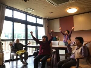 皆さんで体操で体を動かします!!