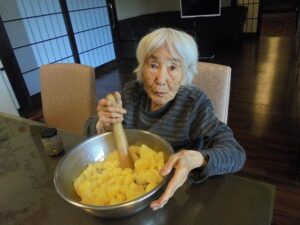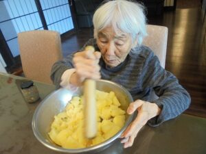 今日のメニューはカボチャサラダです。