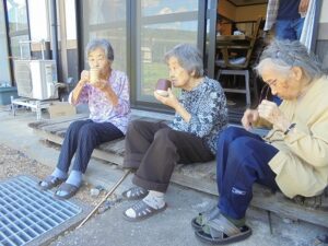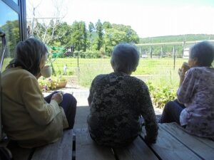 今日もお天気が良く、外でみんなと一緒にお茶を飲みました。