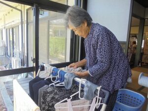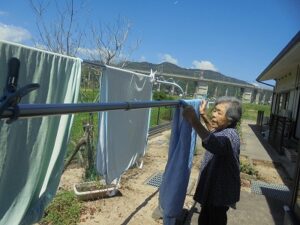 皆さんで協力して、洗濯物を干します。