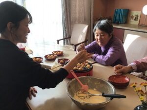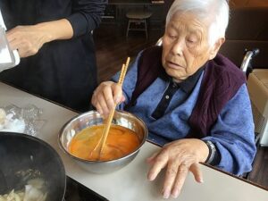今日は皆さんと一緒にご飯のこしらえをしました。