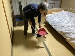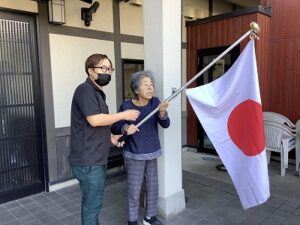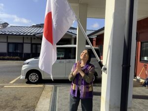 天気が良く入り口に国旗を上げ、掃除をしました。