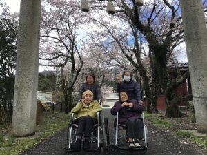 塩津のまんてん横に桜並木は少し開花が遅かったせいか、少し散った程度でした。