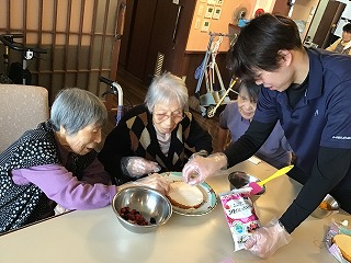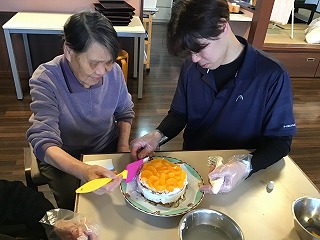 今日がお誕生日の利用者様を皆でケーキを作ってお祝いしました。