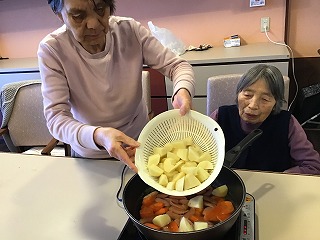 洗濯干しや洗濯たたみ、調理作りと協力して下さいました。利用者様同士、声を掛け合うことが
