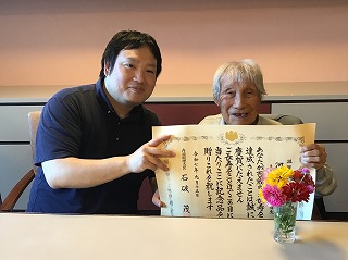 少し前の敬老の日に今年100歳を迎えられるご利用者様へ記念品が贈られてきました。