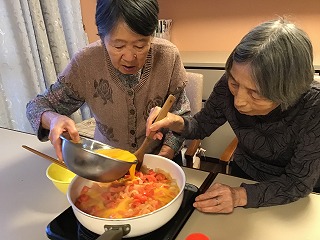 トマト、玉ねぎを炒めて最後に卵でとじて、、