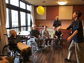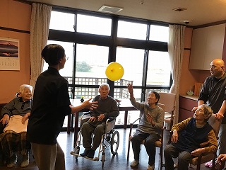 動かしています。風船バレーでは皆さん真剣で楽しそうな姿がみれて私まで嬉しい気持ちになりました。