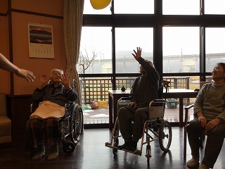 風船バレーで腕や上半身を動かしながら楽しくできたのが1番ですね。次は違うレクリエーションも楽しみましょう。