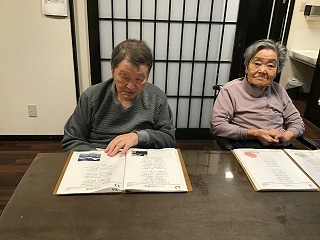 元気に歌って下さり、流行った演歌や童謡など楽しく唄い「昔の歌はええな」と口を揃えて言われます。