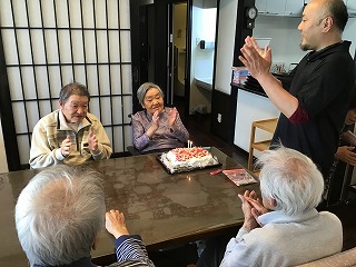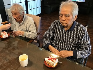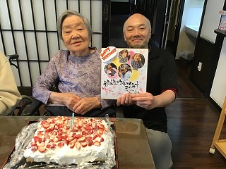 本日は誕生日会をしました。ケーキには沢山のフルーツが入っており喜んでおられました。
