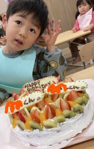 3時のおやつはお楽しみのバースデイケーキをいただきました🎵