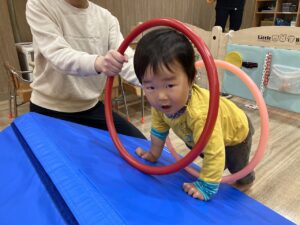 前はちょっぴり怖かったすべり台、手指を使う細かい遊び、マット遊び、友だちと一緒に協力をして遊んでみたり…。