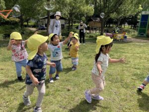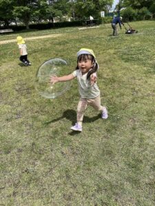 ちょっと休憩をした後、みんなでシャボン玉を追いかけっこしました♬