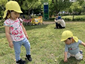 良いお天気の中、虫を見つけ、先生やお友だちと走り♬いつもとは少し違うとっても楽しい遠足になりました。