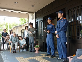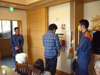 今日は消防署員様立会いの下で避難通報消火器訓練をしました。