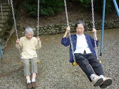 ブランコが有り懐かしそうに乗っておられました。