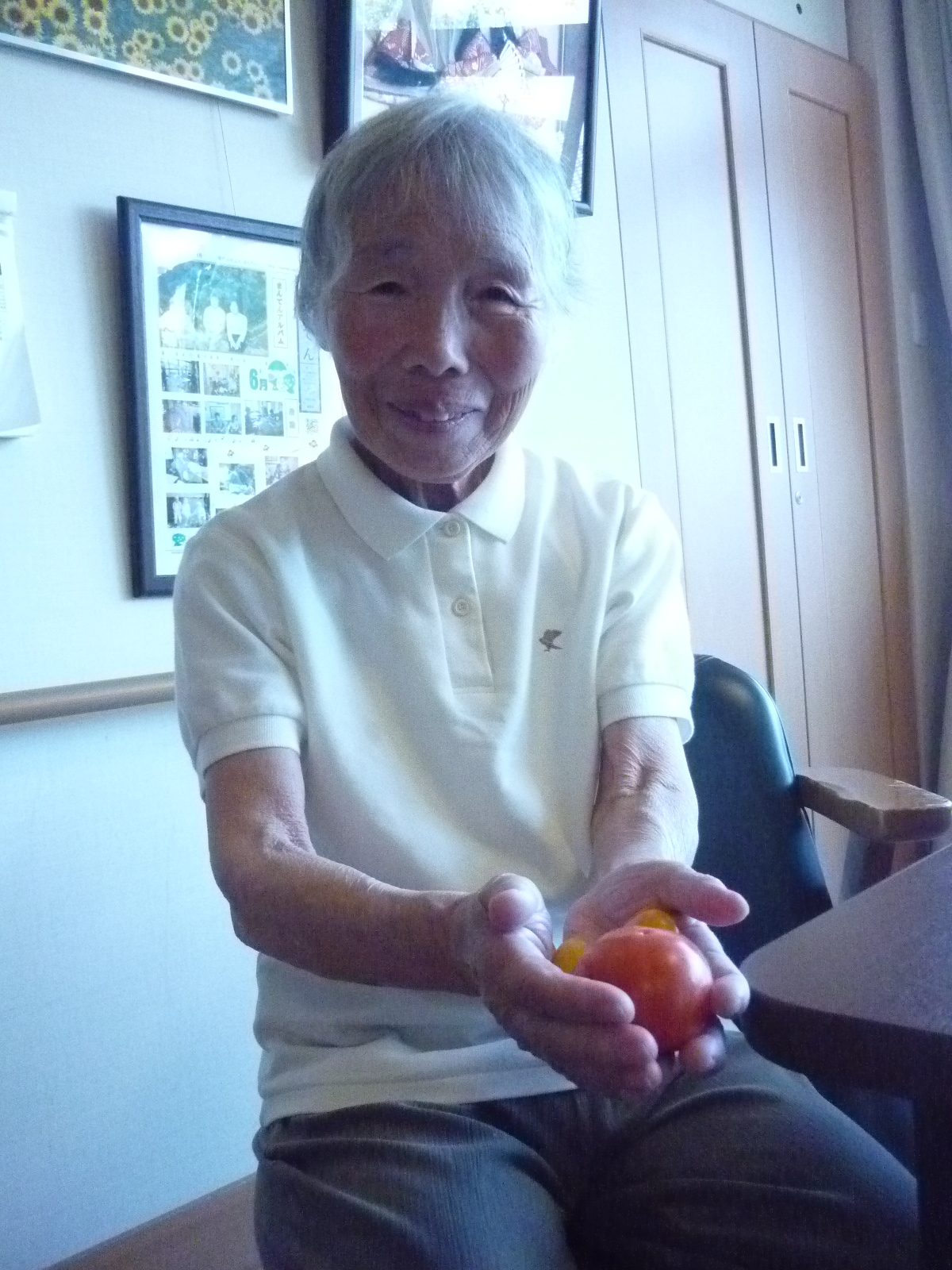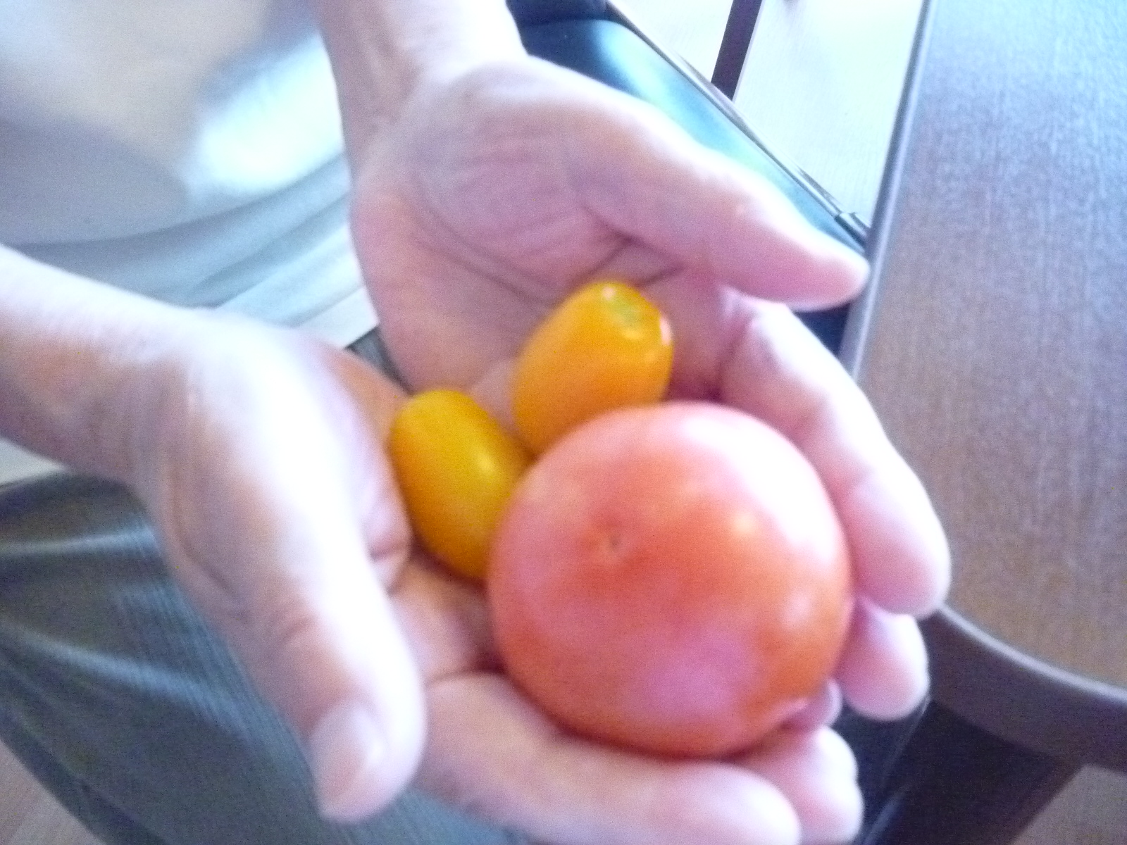 黄色いミニトマト2つと赤いトマト1つなっていました!!