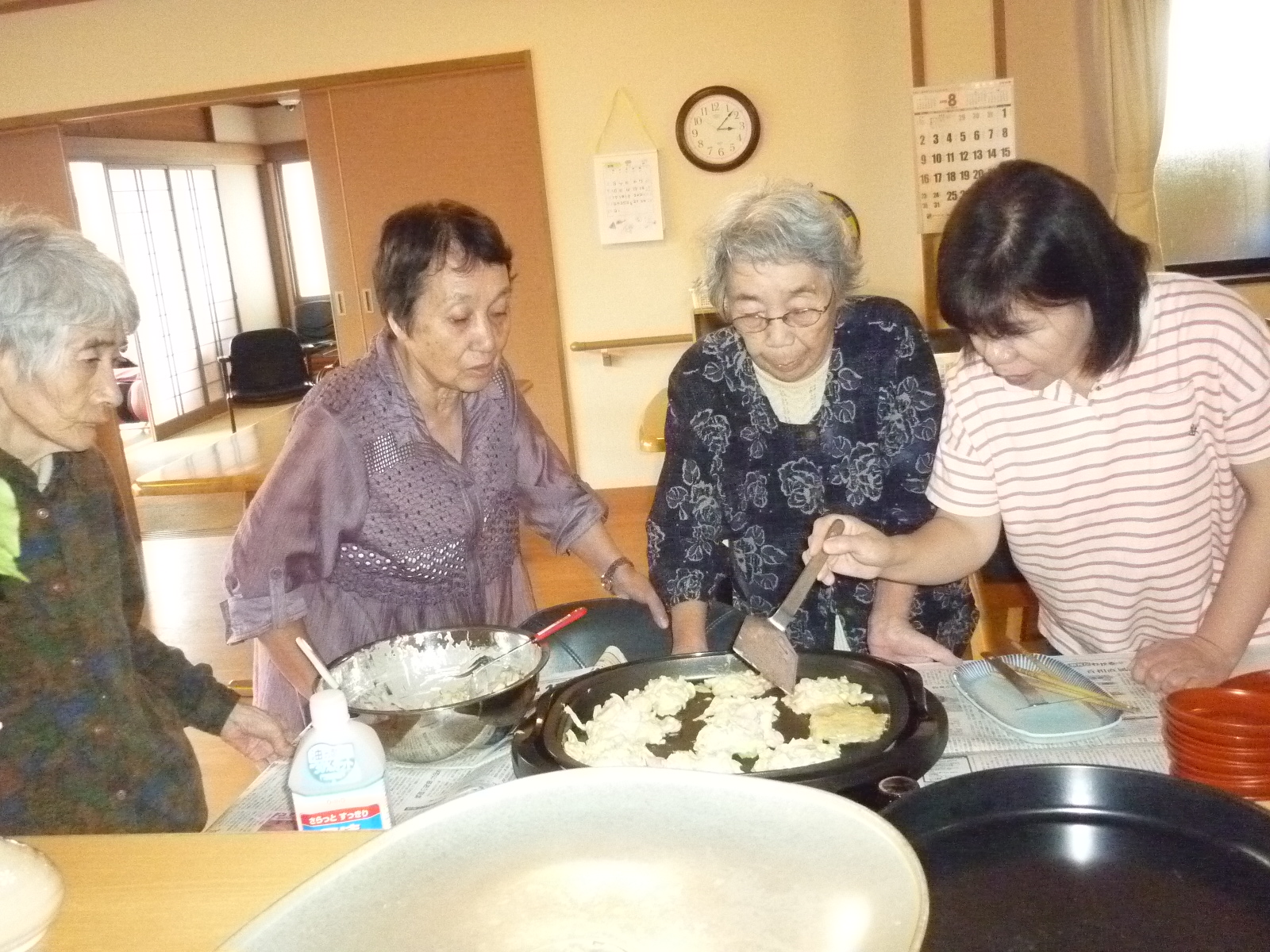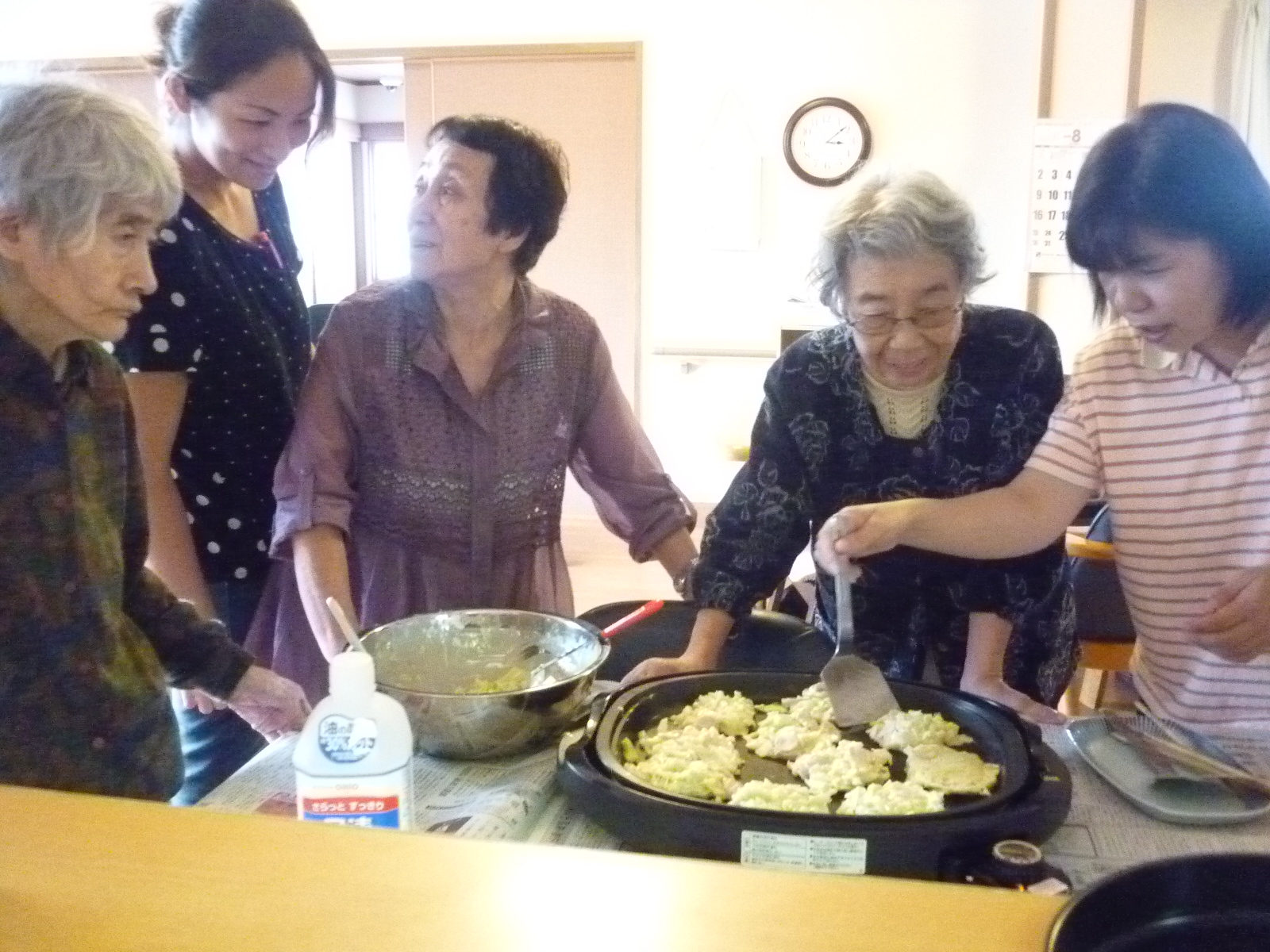 今日は利用者さんがキャベツとソーセージのお好み焼きを作って下さいました。