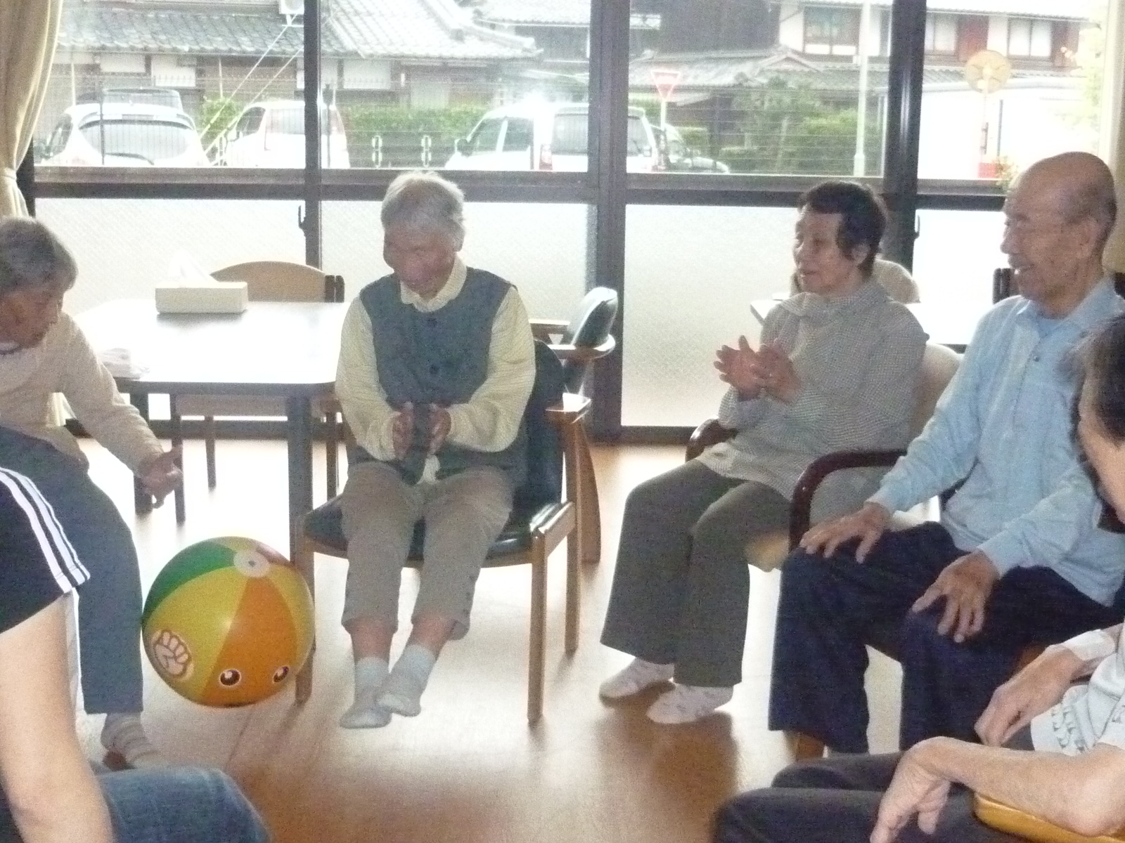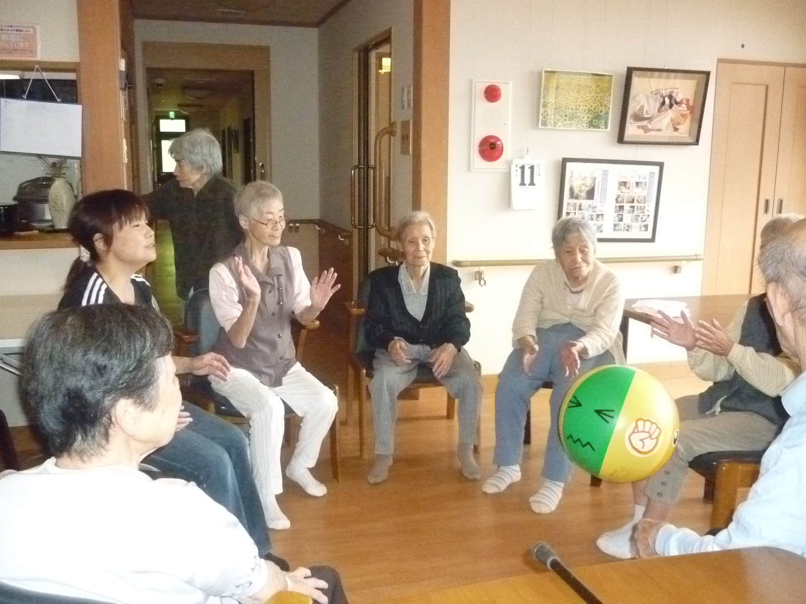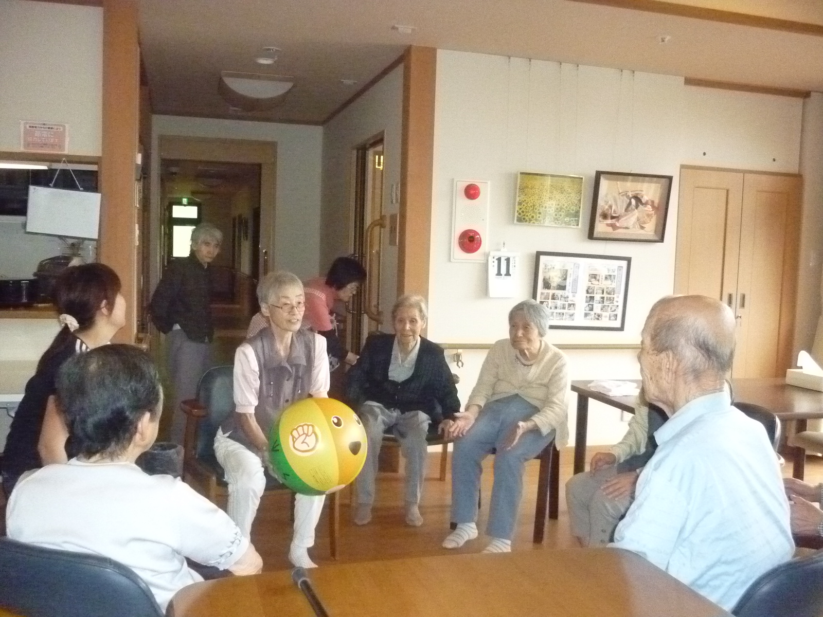 みなさんと軟らかいボールを使ってレクリエーションをしました。