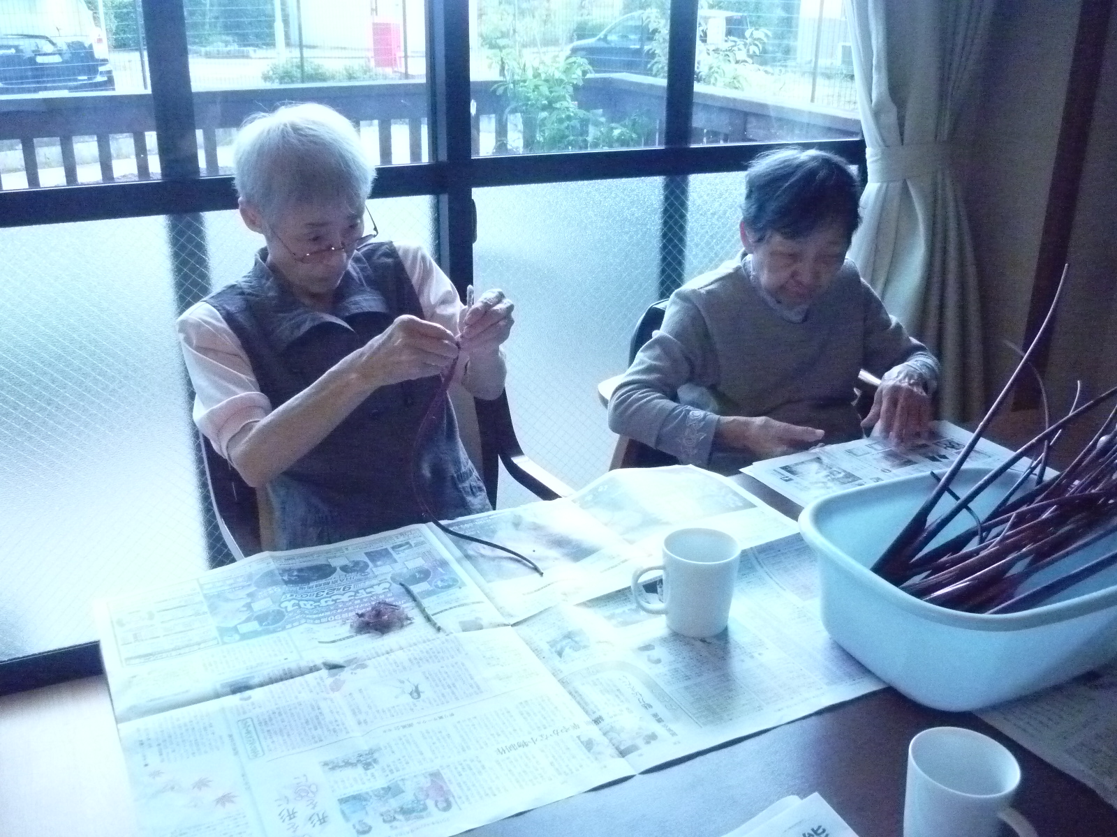 先日お昼ご飯の下ごしらえにみなさん一緒にずいきの皮むきを行いました。