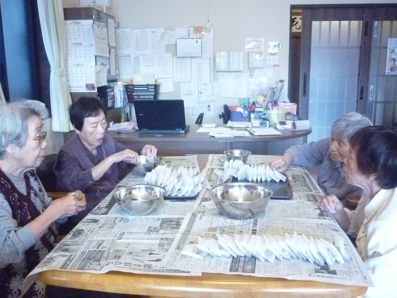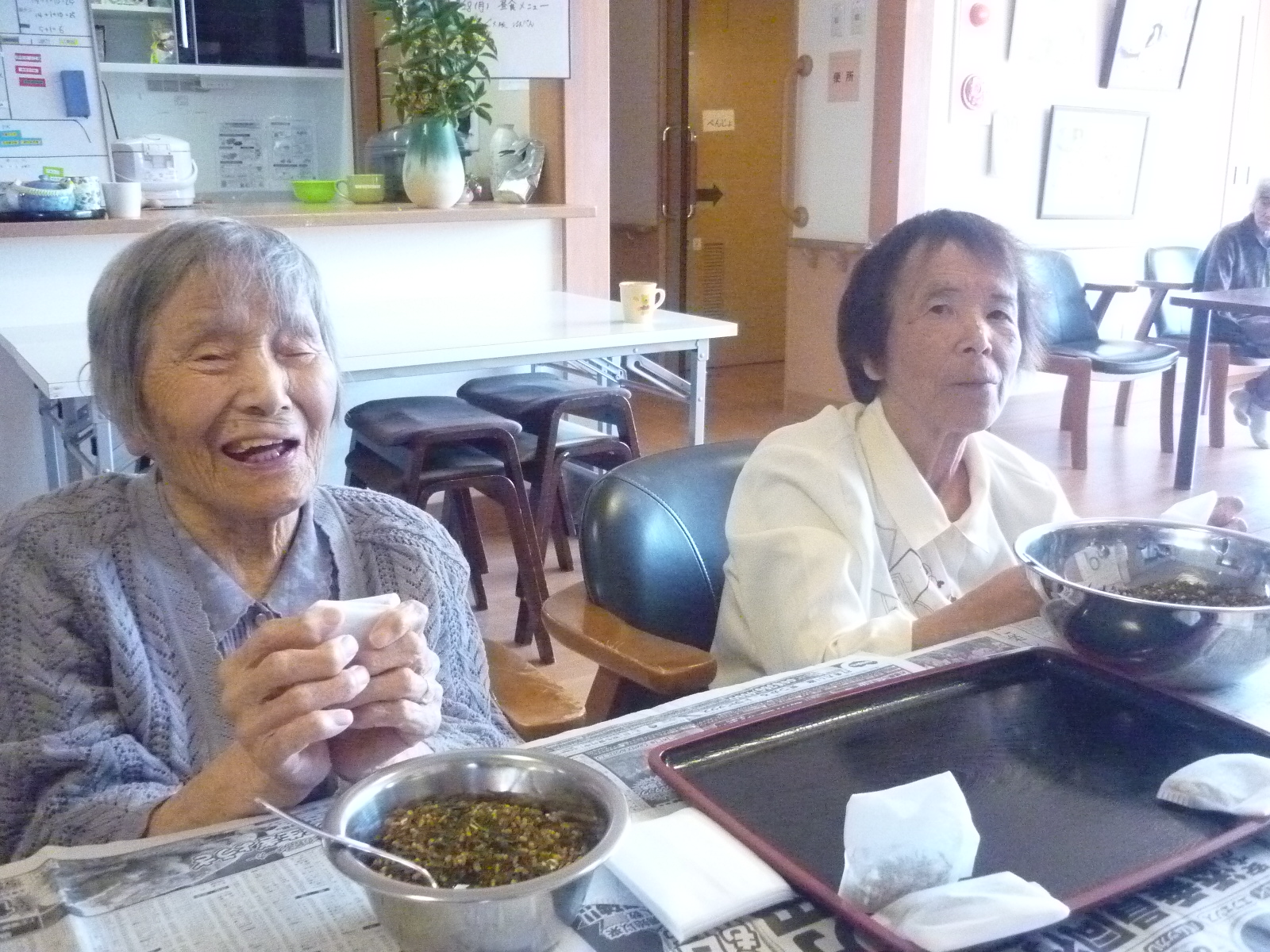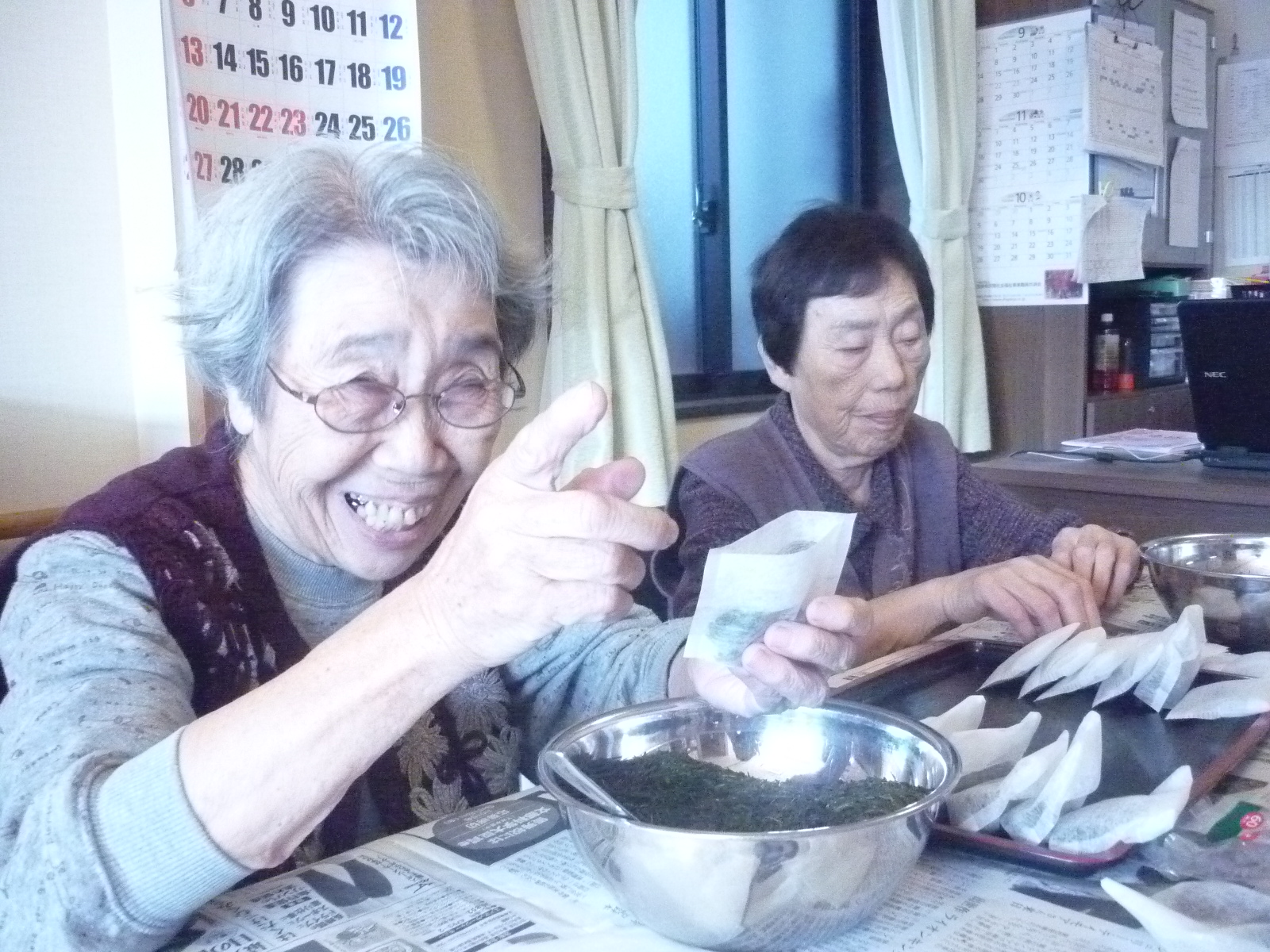 ティーパック作りや昼食の下準備を談笑しながらしてくださいました。