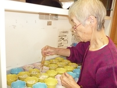 野菜を切ったり、盛り付けをしてくださったりと利用者さんの協力の元