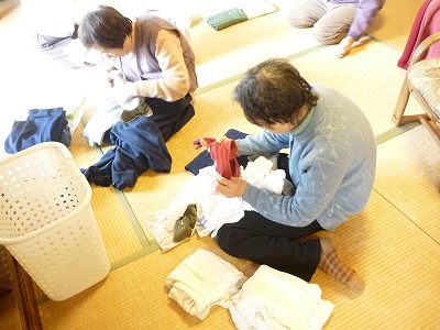 乾いたので取り込むと「たたみましょうか?」利用者さんから声をかけてくださりました。