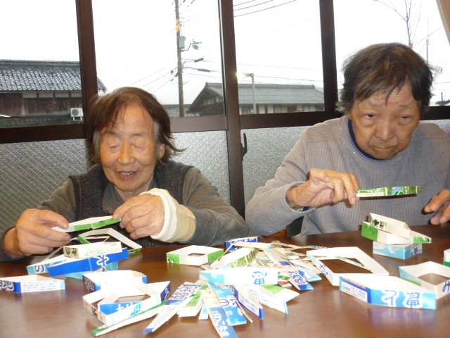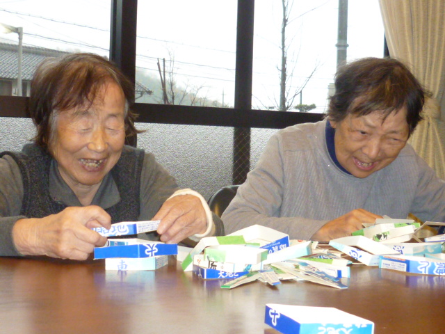 牛乳パックで作った積み木でバランスゲームをされましたwink