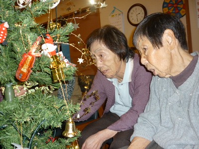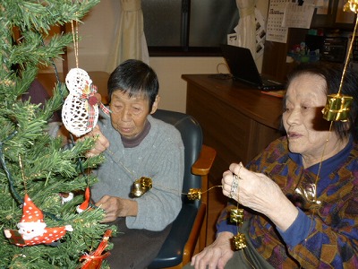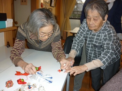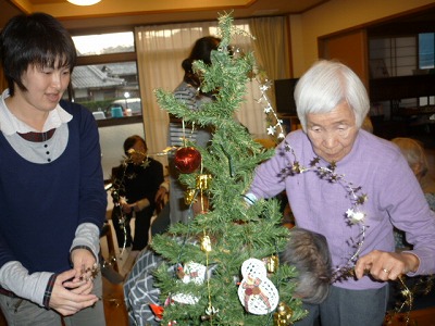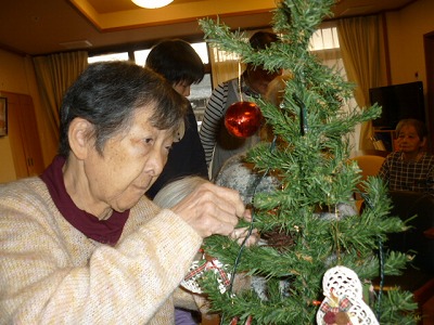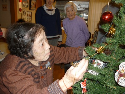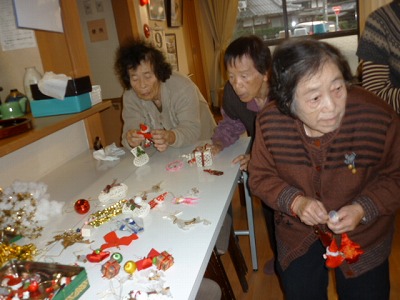 今日はグループホームの方と一緒にクリスマスの飾り付けを