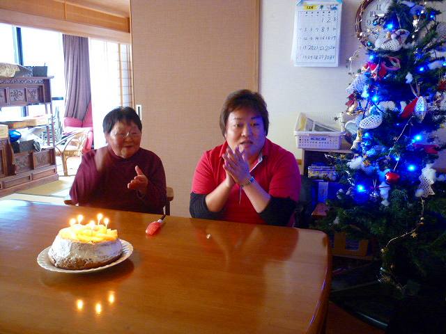 職員お手製のケーキを食べていただき、クリスマスの
