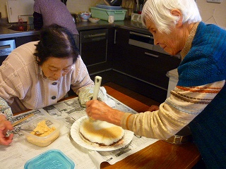 女性のご利用者さんがぼたもちケーキを作って下さいました。
