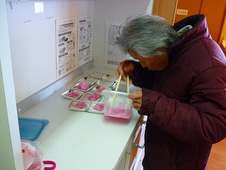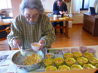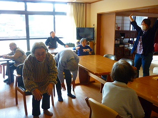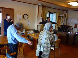今日も、盛り付けをされたりお昼前に体操をされました。