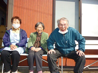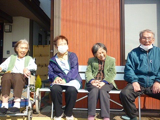 お散歩帰りに、ベンチで一服されています。何か楽しいお話をされてたようですね。